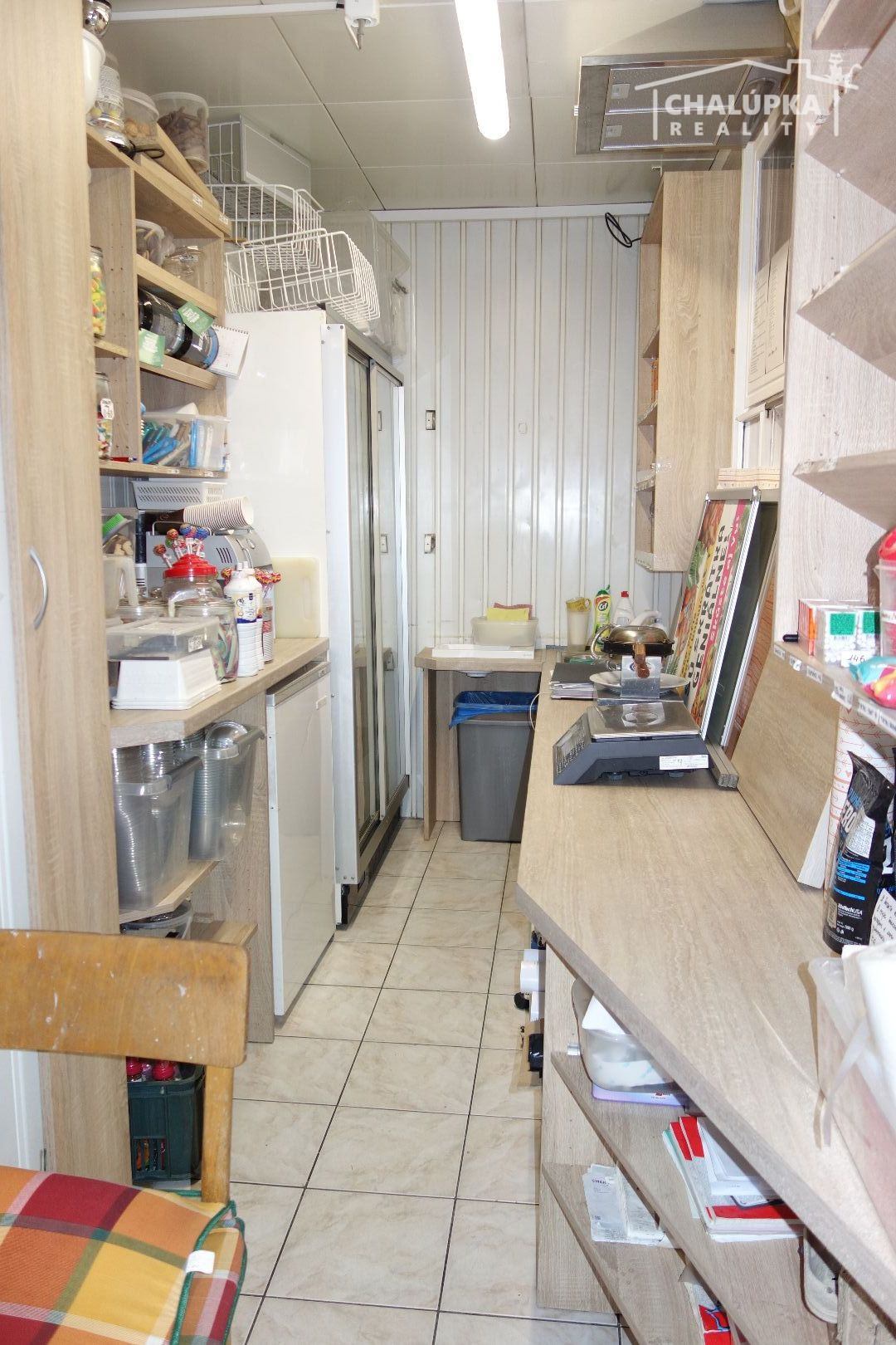 Dispozícia: 1 miestnosť o rozlohe 6 m2 s okienkom na predaj + na poschodí je priestor na uskladnenie tovaru o rozhlohe 6 m2.
