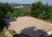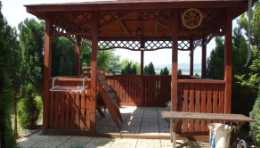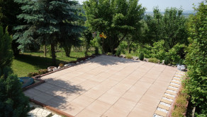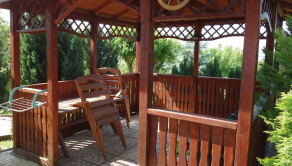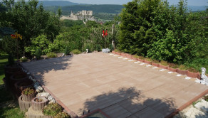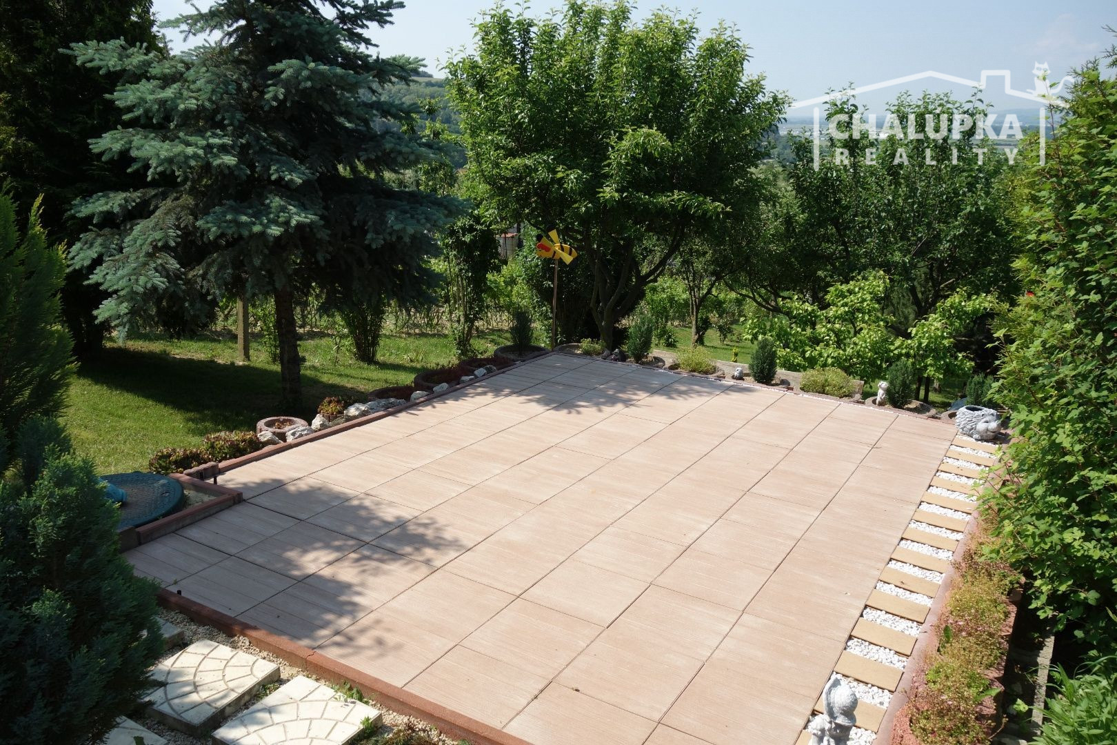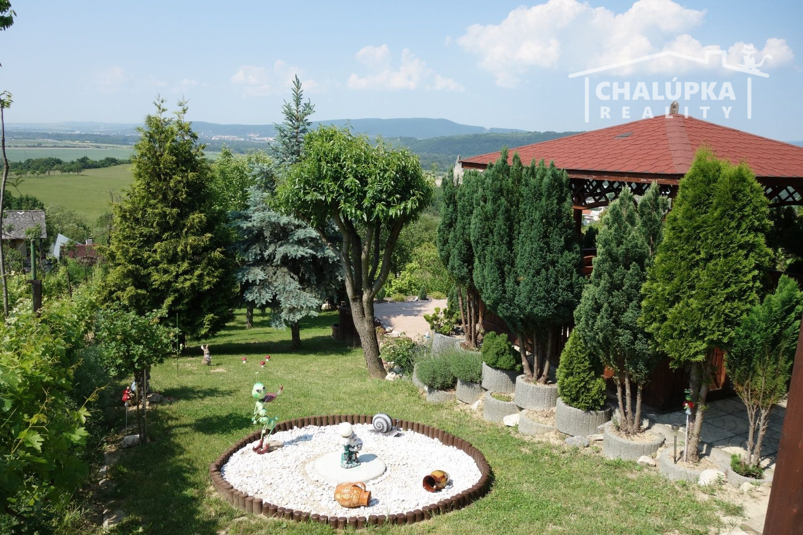 Na pozemku sa nachádza drevený altánok, terasa, miesto na vírivku alebo bazén s panoramatickými výhľadmi na hrad a okolie. Na jeho konci je ovocný sad s okrasnými drevinami.