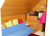 Druhé podlažie (podkrovie): 1 spálňa s výstupom na balkón, 2 spálňa a šatník (26 m2) + lodžia (5 m2)