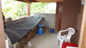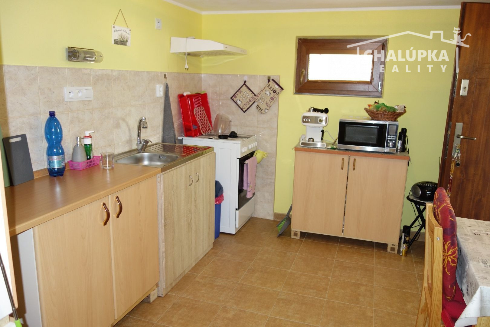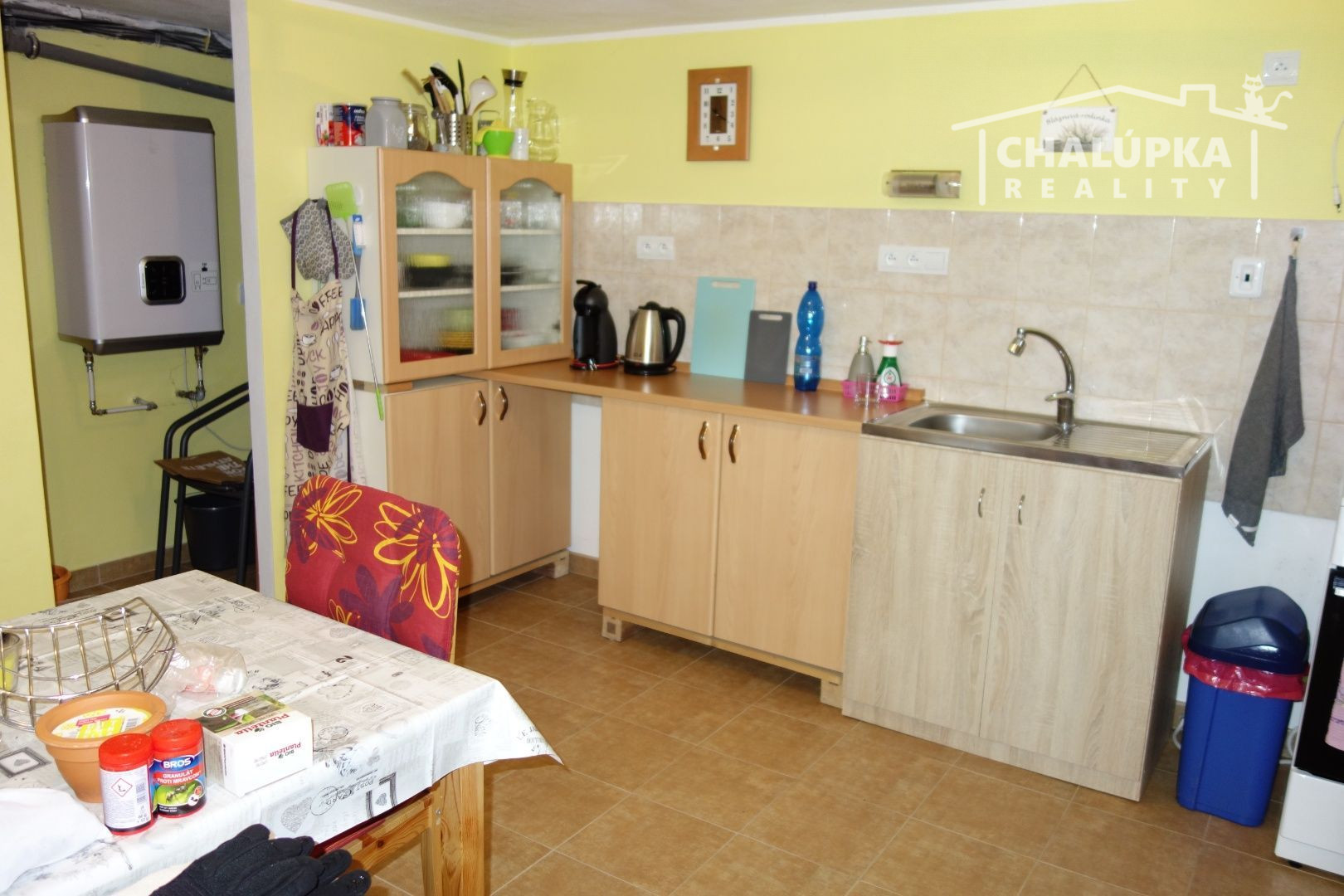 Suterén: druhá kuchyňa, komora s el. kotlom, skladový (pivničný) priestor, WC (23 m2), zastrešený vonkajší priestor na drevo.