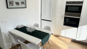 Samotný byt prešiel rovnako kompletnou a vkusnou rekonštrukciou (zmena dispozície, komplet IS: rozvody vody, elektriky a kanalizácie., stierky, obložkové dvere, vstupné bezpečnostné dvere, plastové okná a balk. dvere, plávajúce podlahy, obklady, dlažby, kuchynská linka s elektrospotrebičmi, kúpeľňa bola rekonštruovaná ako prvá a má cca 13 rokov). Výborné je, že v cene bytu môže byť väčšina nábytku, vybavenia a zariadenia, ktoré sa v byte nachádza.