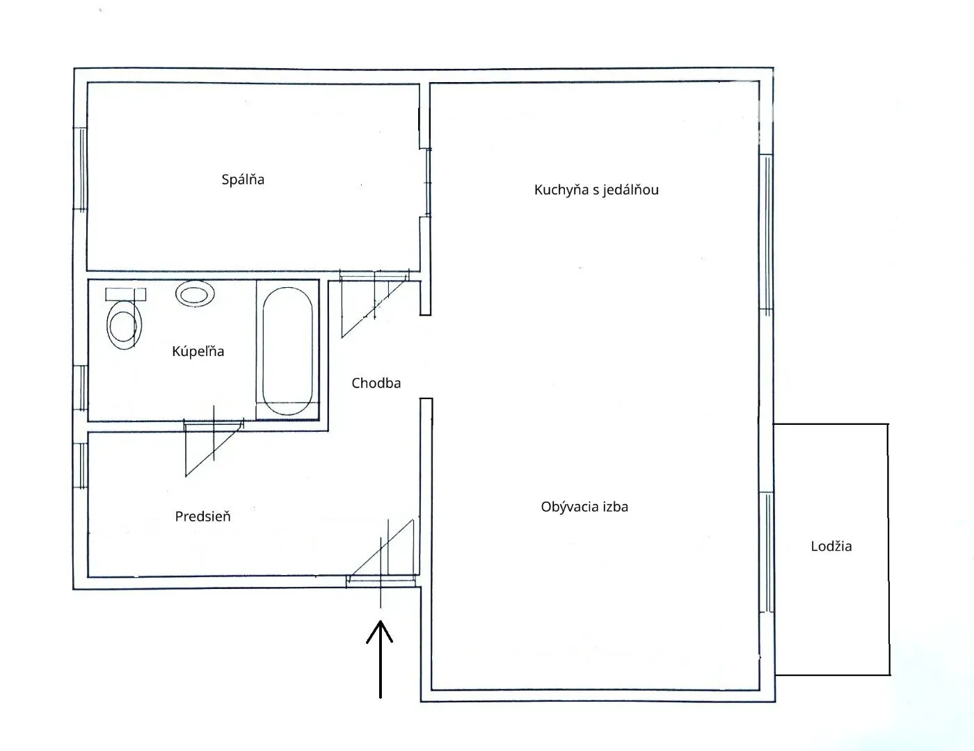 Dispozícia: predsieň, kúpeľňa s WC, chodba, spálňa a denná časť (kuchyňa s jedálňou prepojená s obývacou izbou a výstupom na lodžiu). K bytu patria aj dve priestranné pivnice. Orientácia bytu: JV (denná časť), SZ (spálňa). Bezproblémové parkovanie je priamo pred bytovým domom.