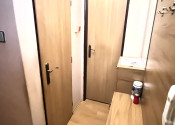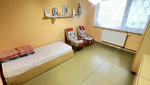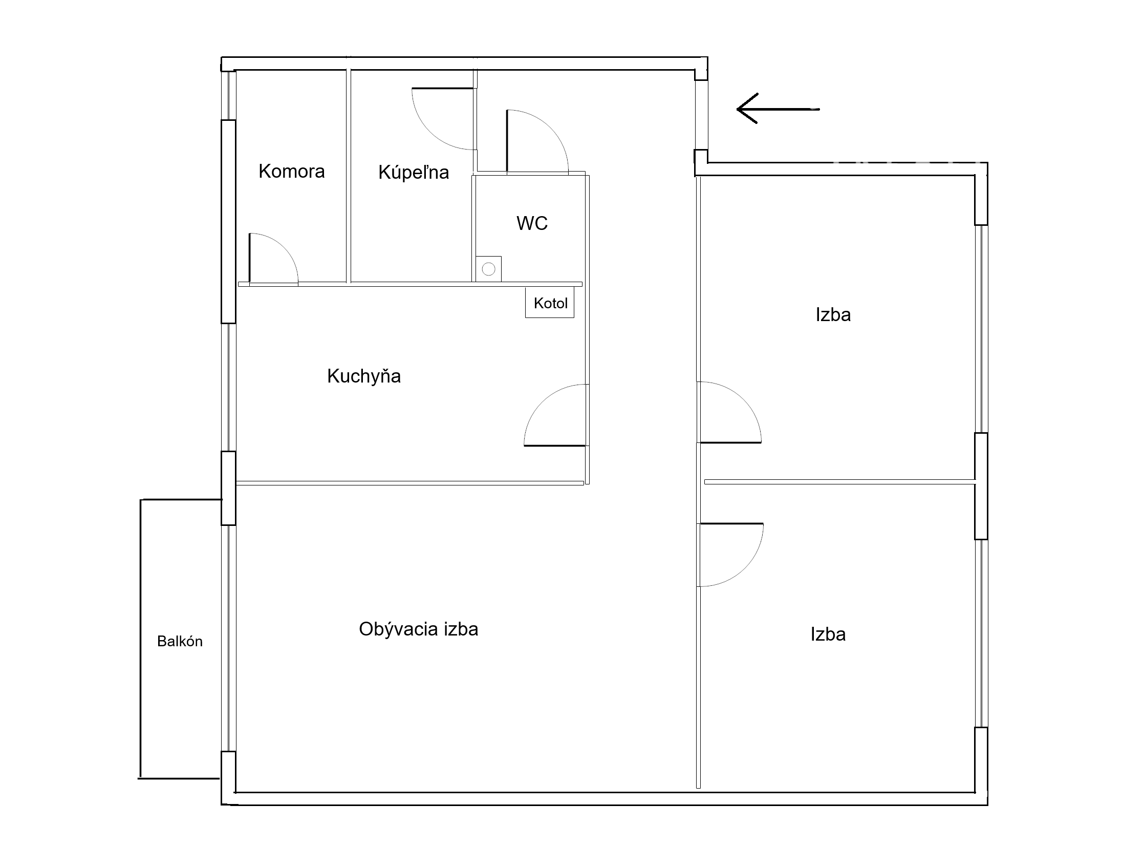 Dispozícia: chodba, samostatné wc, kúpeľňa, kuchyňa, komora, obývacia izba s výstupom na lodžiu, 2 spálne. O komoru je možné rozšíriť kuchyňu, prípadne kúpeľňu (viď. pôdorys). K bytu patria aj 3 veľké pivnice. Orientácia bytu: východ, západ. Mesačné náklady pri bývaní predstavujú 165,-Eur už aj s energiami.