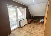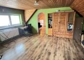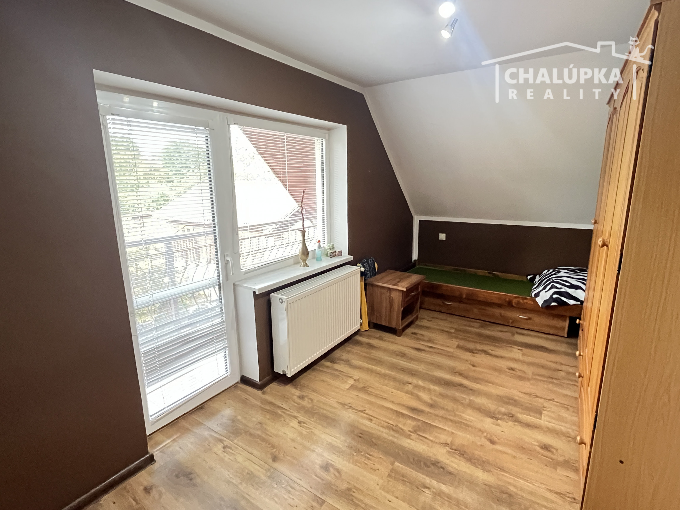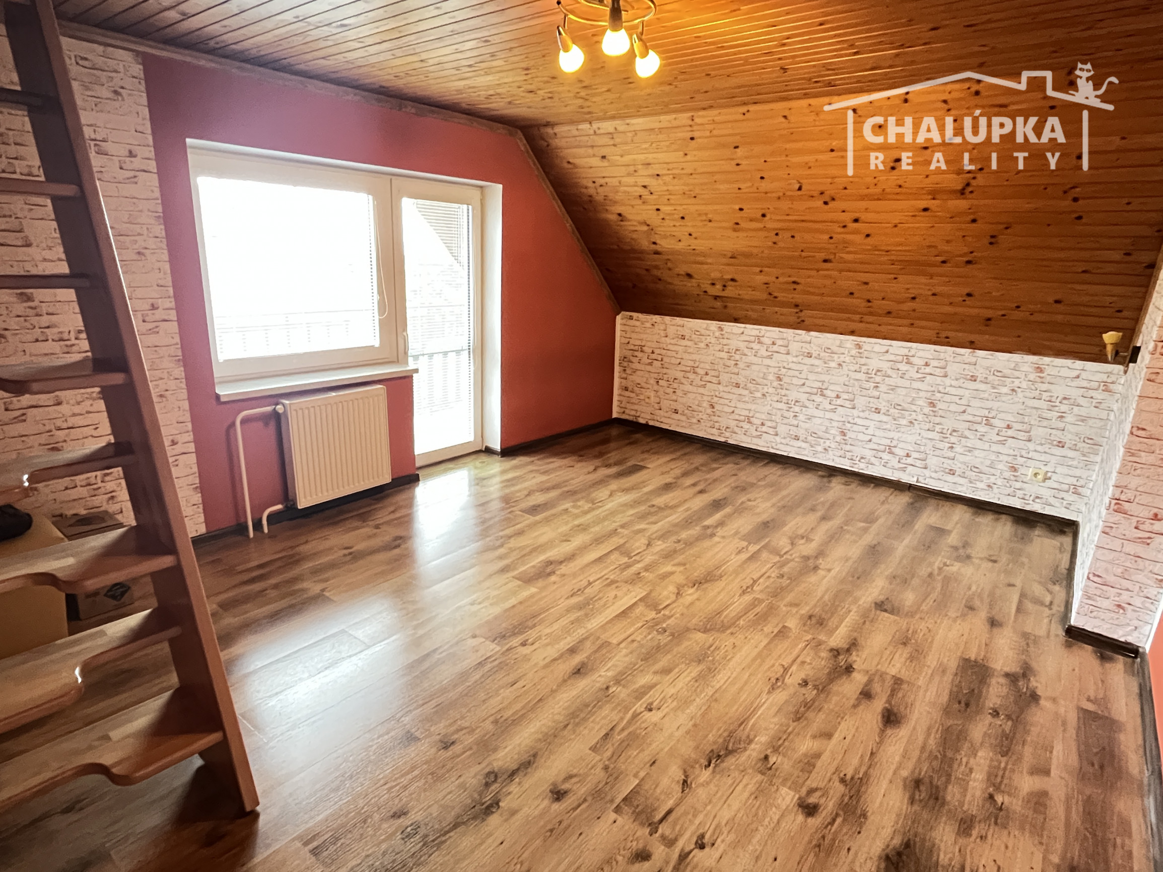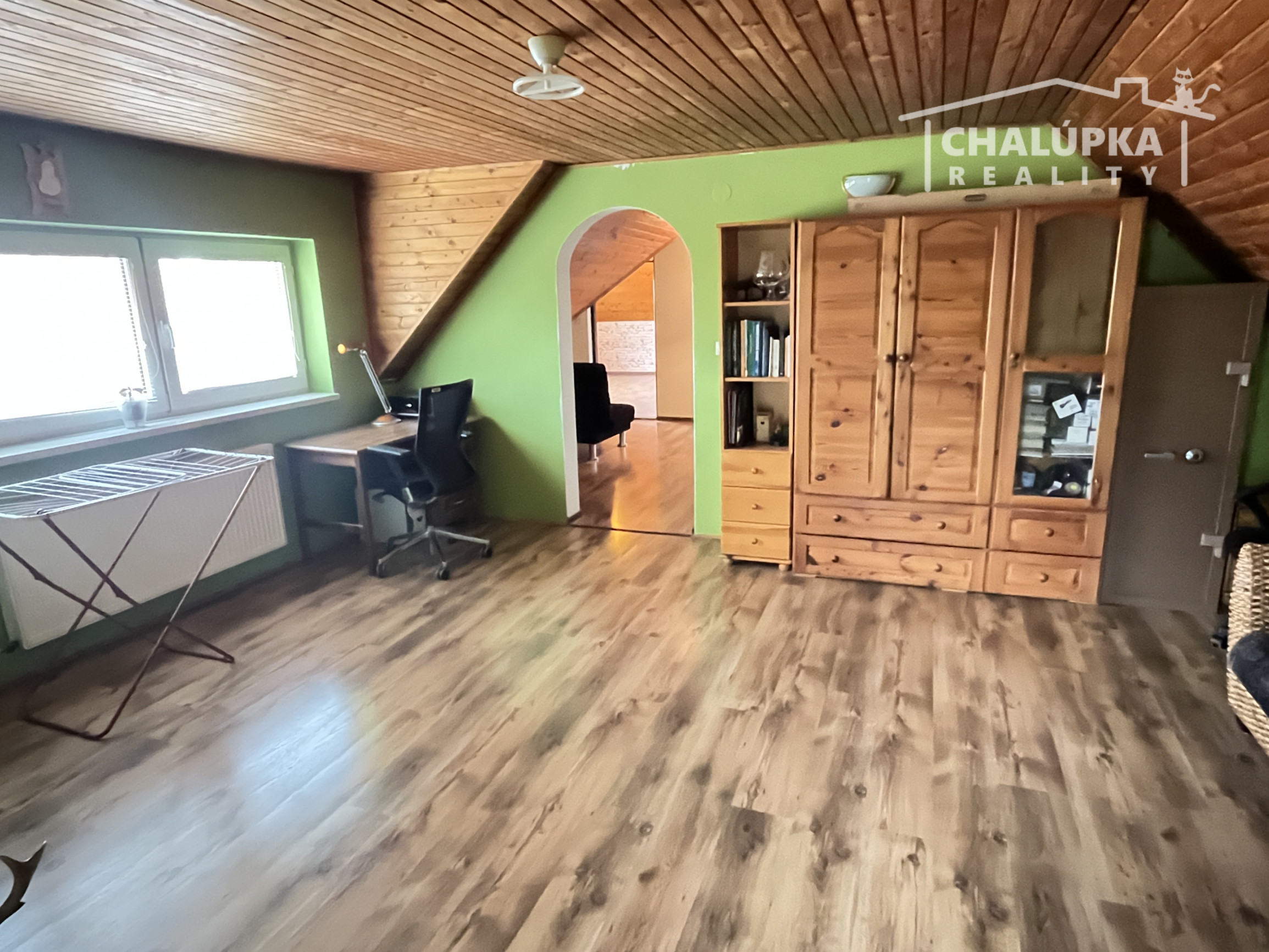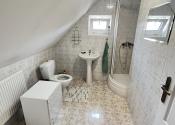 Poschodie: schodisko, hala, 4 spálne (z toho majú 3 výstup na lodžiu, z jednej je schodisko do povalových priestorov a v jednej z izieb je dovedená voda a odpad, takže je tu možnosť jednoduchým spôsobom spraviť ďalšiu kuchyňu) a šatník. Podlahová plocha poschodia je 103 m 2 + 12 m2 lodžie a cca 30 m2 povalových priestorov.