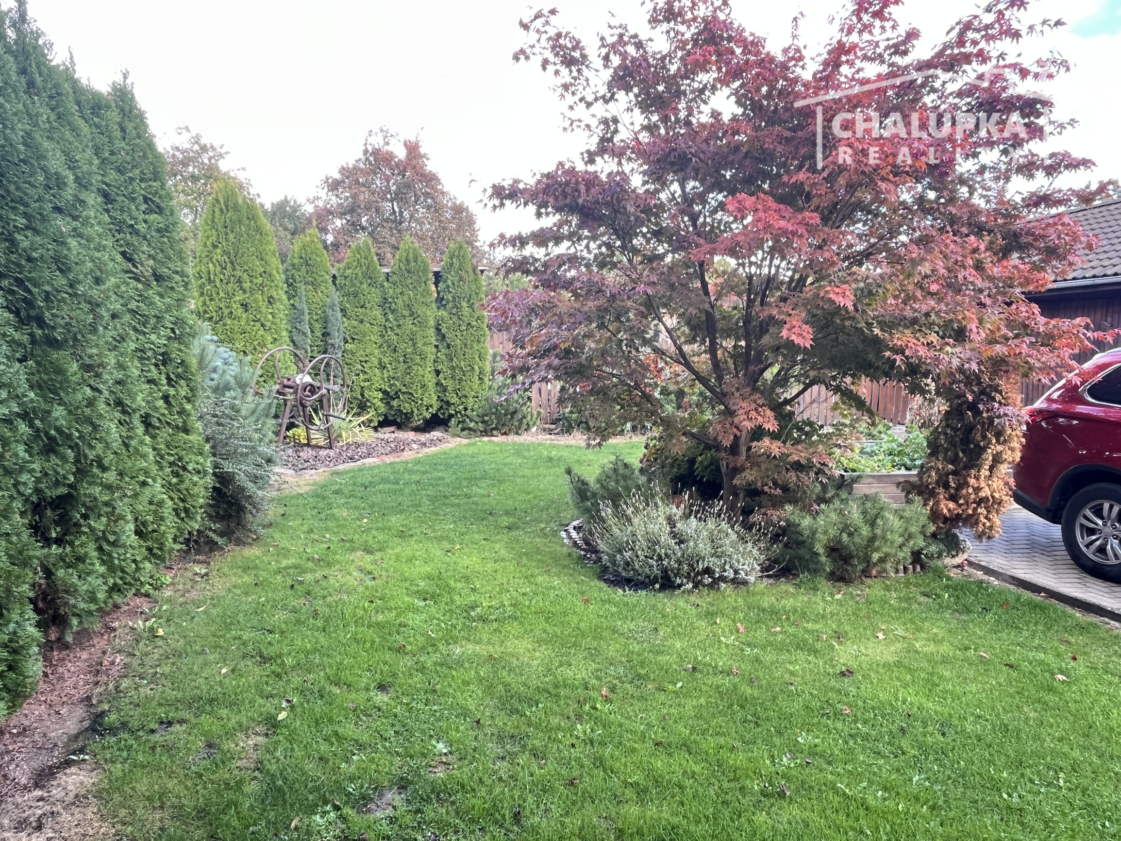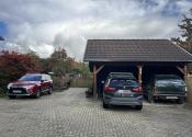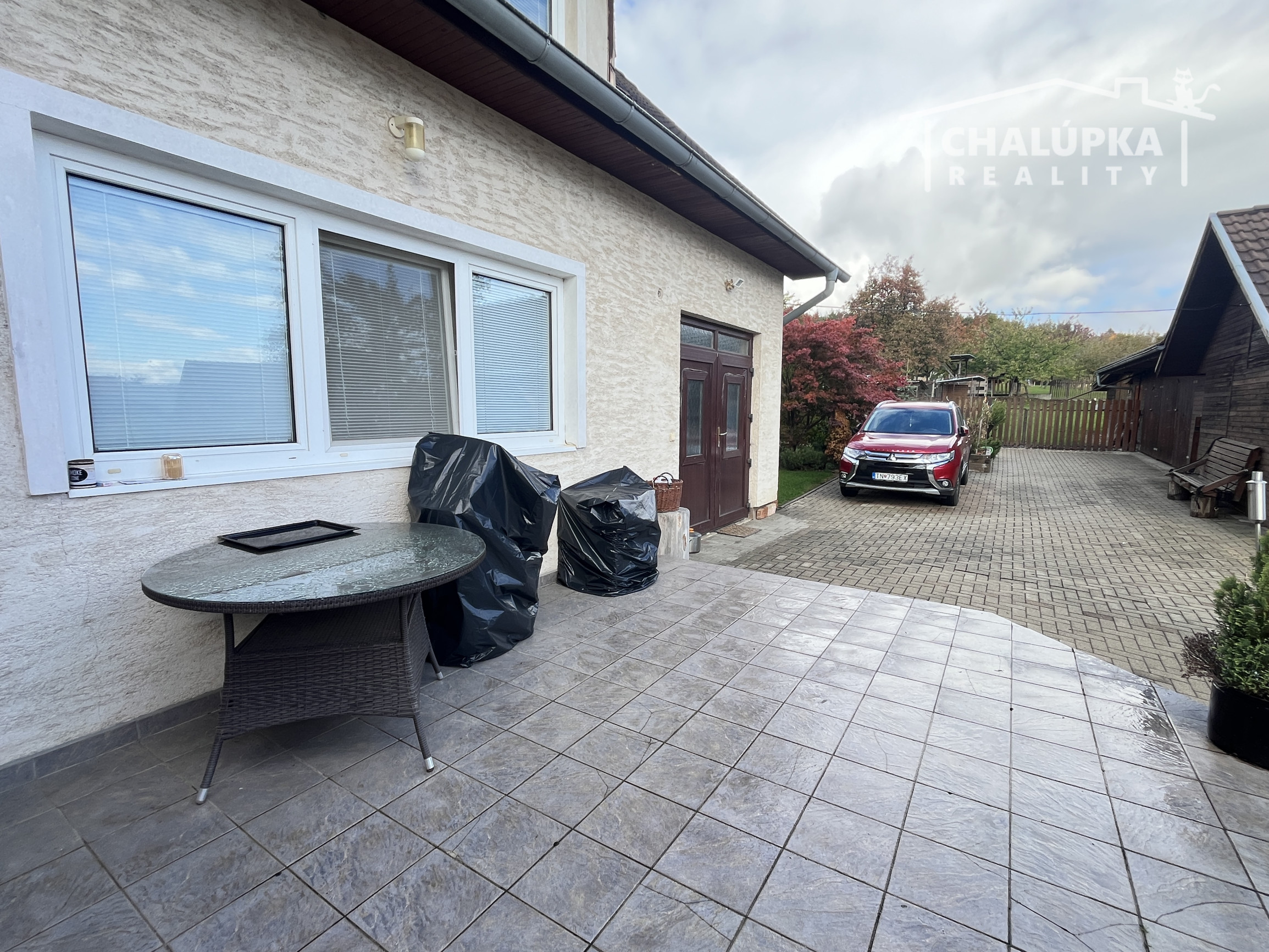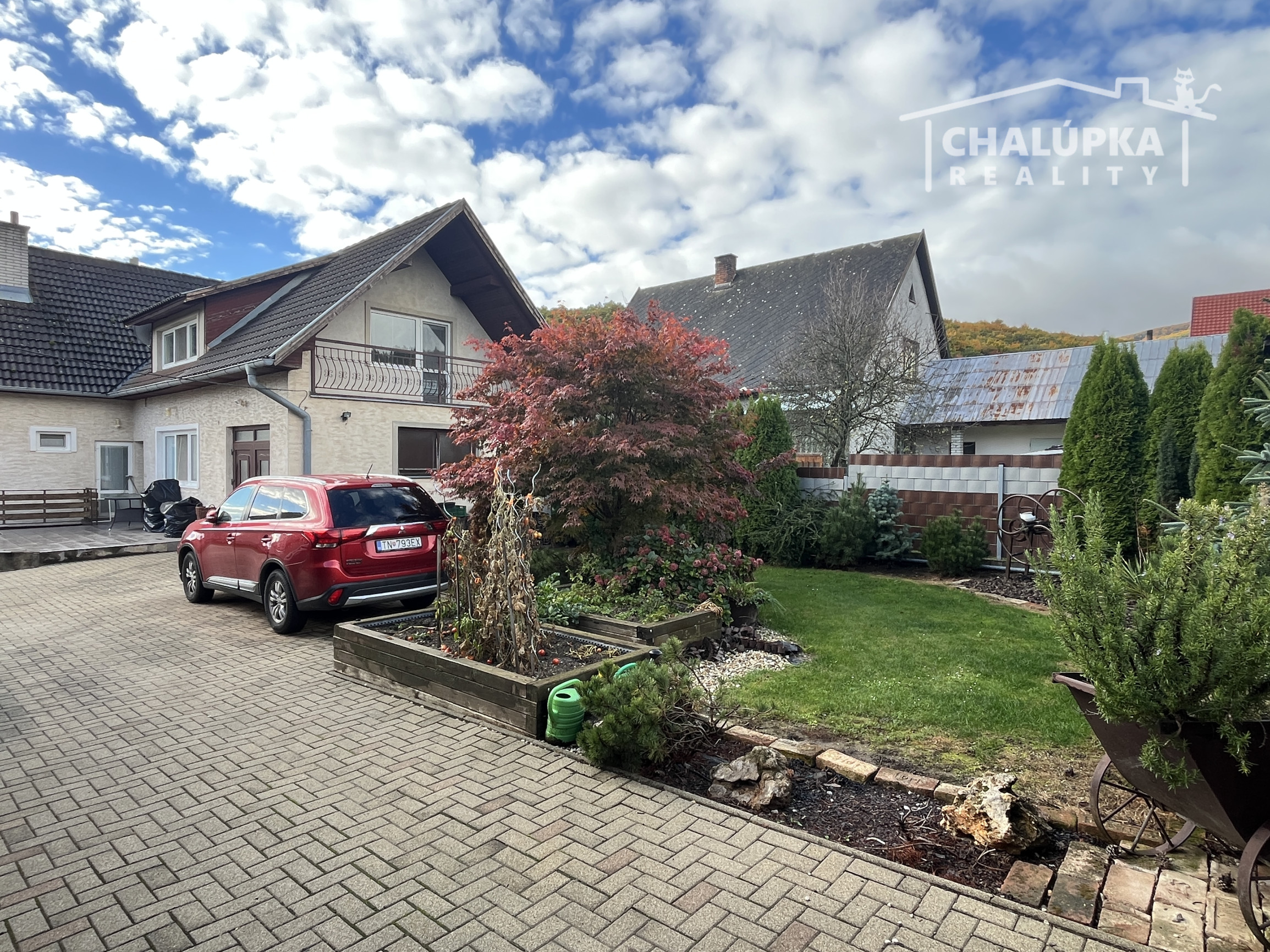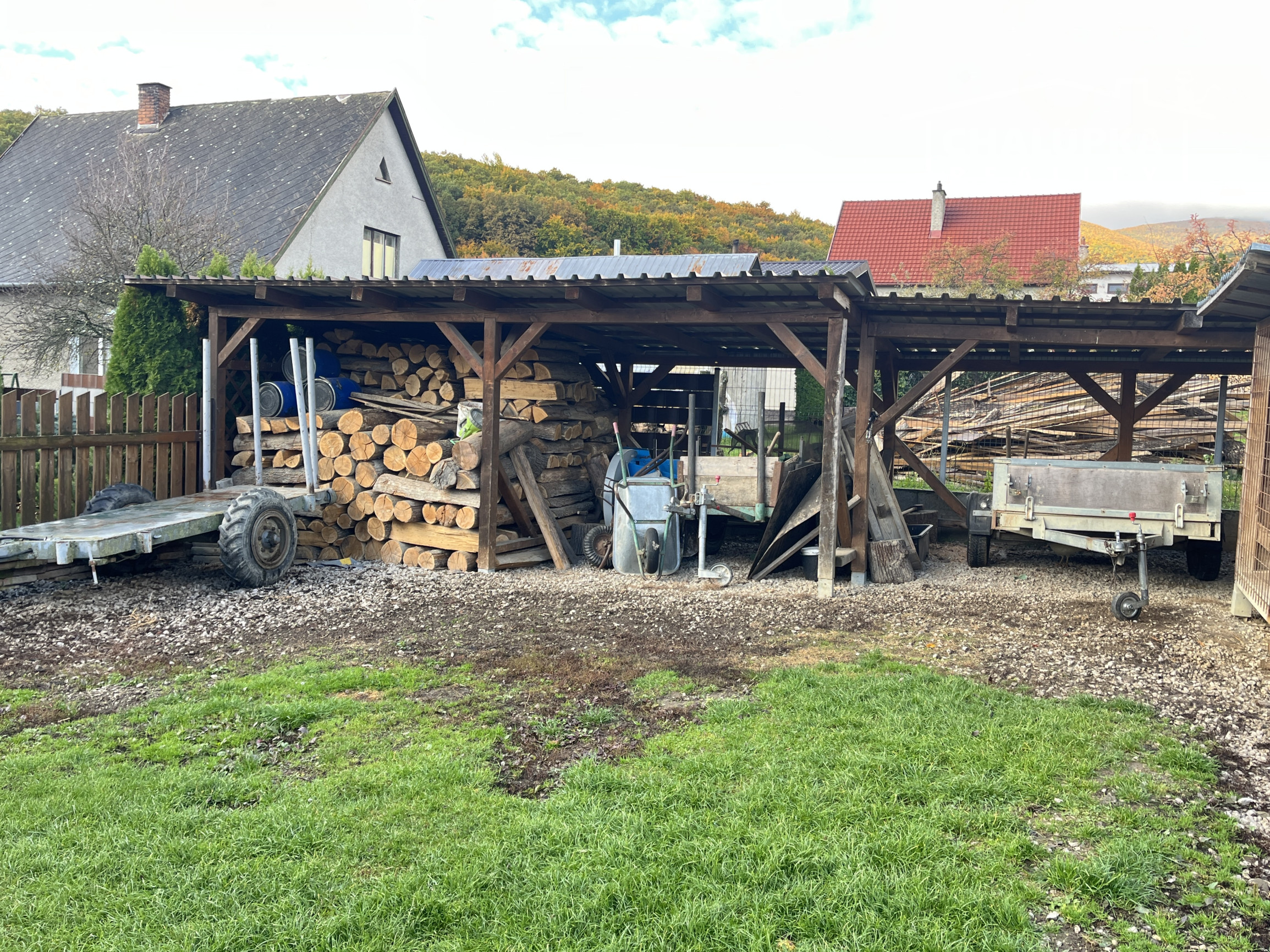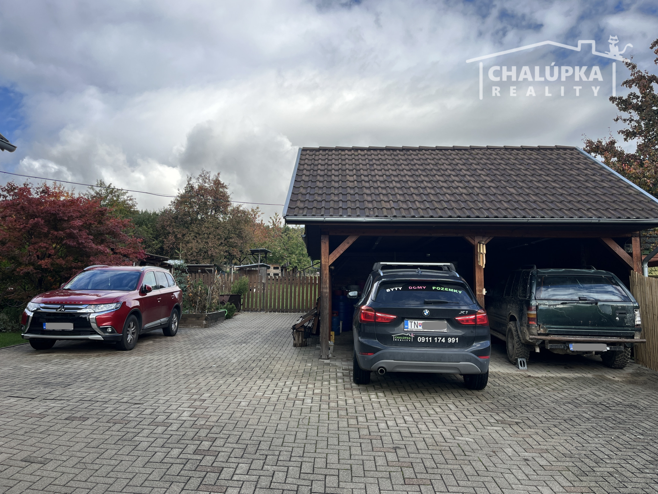 Na upravenom pozemku sa nachádza: prístrešok pre 2 autá, parkovacia plocha pre ďalšie 2-3 autá, okrasná a bilinková záhrada, drevená hospodárska budova - skladové priestory (cca 90 m2), 2 voliéry pre psa, kurník a prístrešky pre rôzny materiál. V zadnej časti pozemku je ovocný sad s úchvatnými výhľadmi na okolitú prírodu. Celý pozemok je upravený tak, že každy kút tu má svoj účel a miesto.