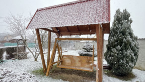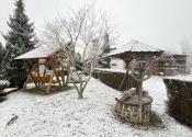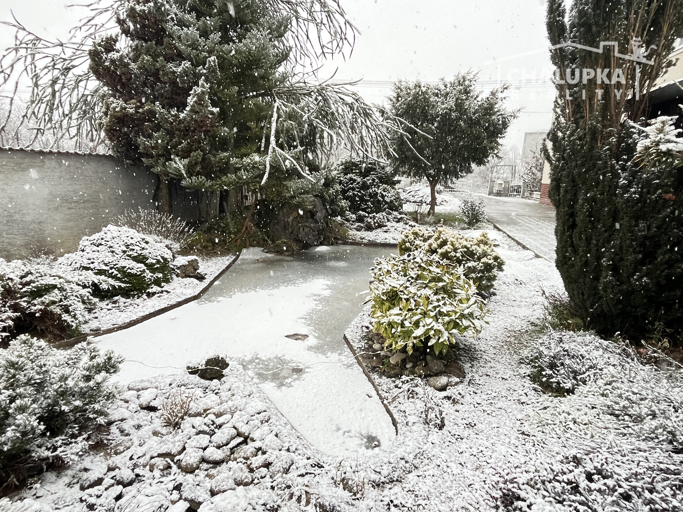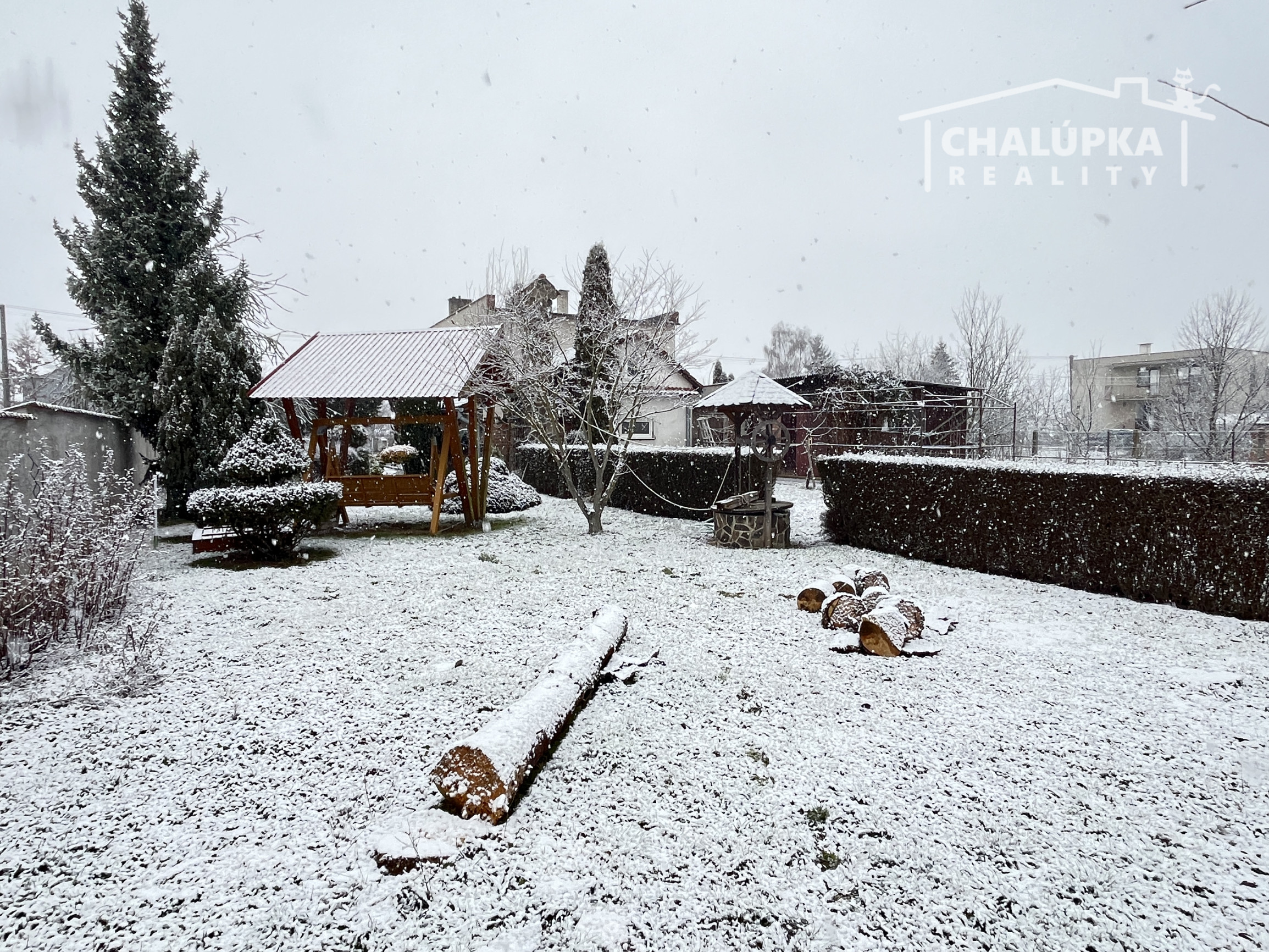 Na rovinatom pozemku sa nachádza tehlová garáž s prístreškom a vonkajším krbom (v zime na parkovanie, v lete na posedenie a grilovanie), staršia kvádrová garáž so skladovými priestormi, jazierko s rybičkami a okrasnými drevinami, hojdačka, štýlová studňa, trávnatá plocha a plocha na pestovanie plodín. Pozemok je upravený, veľmi dobre a prakticky rozčlenený, delí sa na úžitkovú a relaxačnú časť. Vo dvore je možné bezproblémové parkovanie niekoľkých áut.
