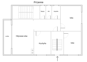 Prízemie: predsieň so schodiskom, izba, hala, izba, kuchyňa, špajza, samostatné wc, kúpeľňa, obývacia izba s výstupom na veľkú lodžiu. Podlahová plocha prízemia je 100 m2.