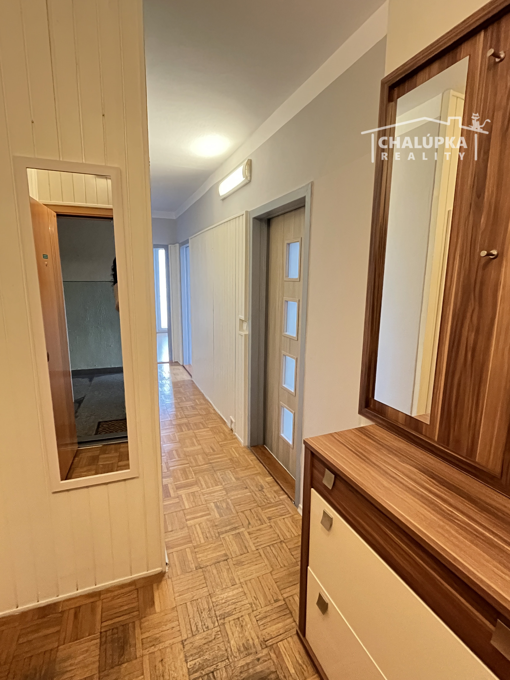 Dispozícia: predsieň, šatník, 2 spálne, obývacia izba s výstupom na lodžiu, kuchyňa, špajza, kúpeľňa s čiastočne oddeleným wc. Výhodou je, že všetky miestnosti v byte sú nepriechodzie. K bytu patrí i pivnica. Orientácia bytu: západne (kuchyňa a obývacia izba), spálne sú orientované severne.