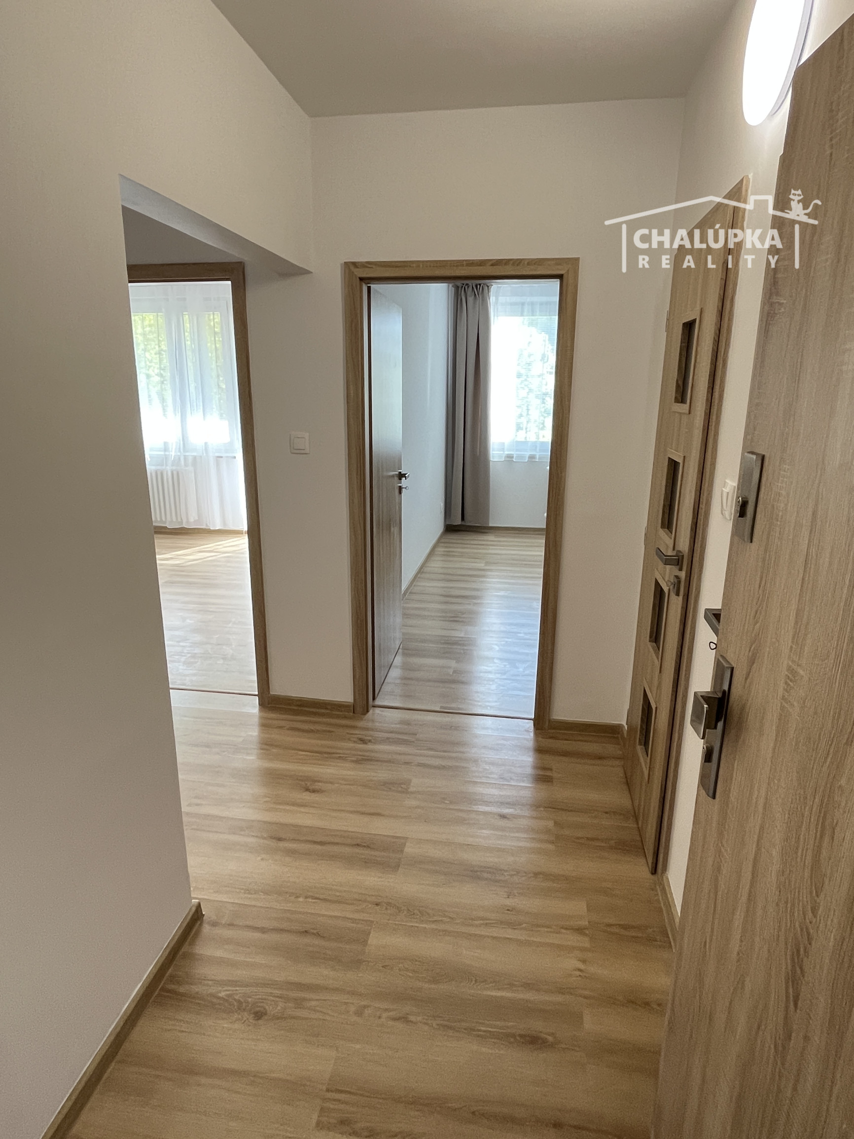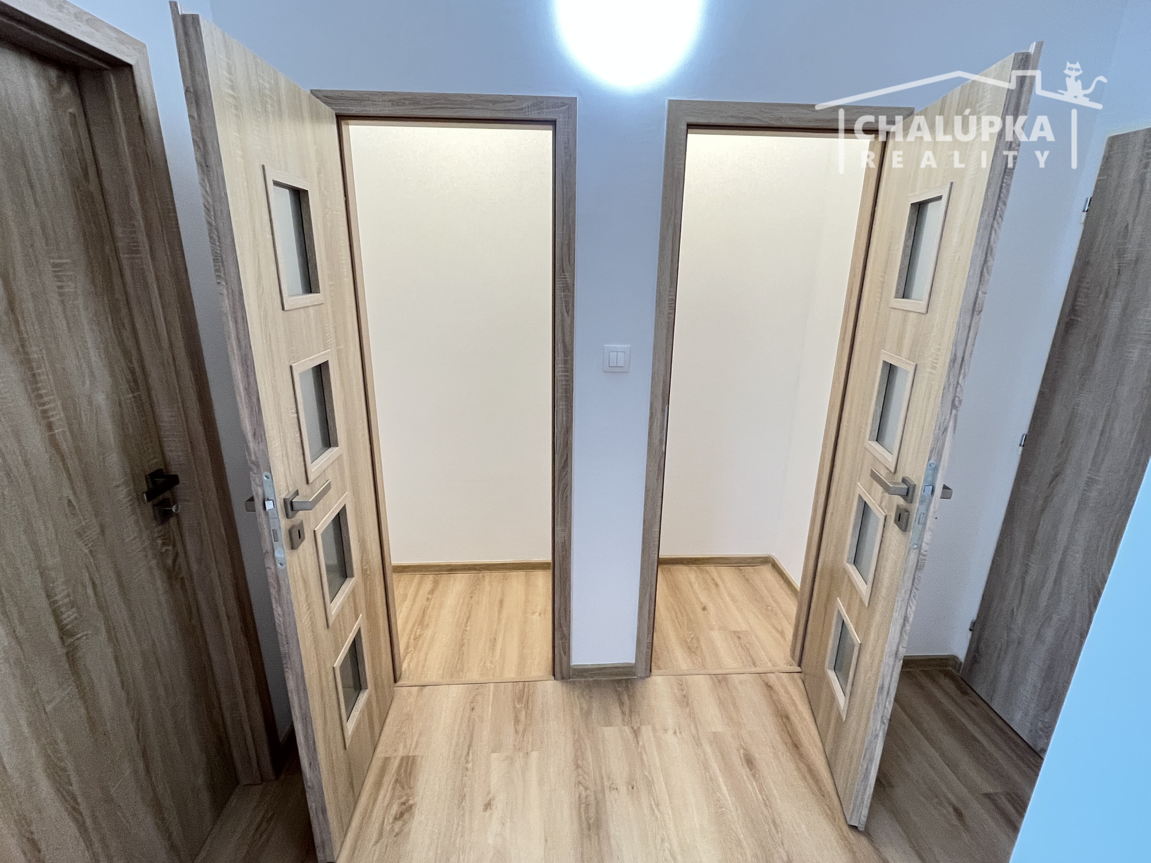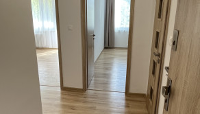 Dispozícia: chodba, 2 špajze, samostatné WC s umývadielkom, sprškou a práčkou, kúpeľňa s umývadlom, vaňou a skladacou zástienkou, spálňa, obývacia izba s kuchynským kútom a výstupom na priestrannú lodžiu. K bytu patrí i pivnica. Orientácia bytu je východná.
